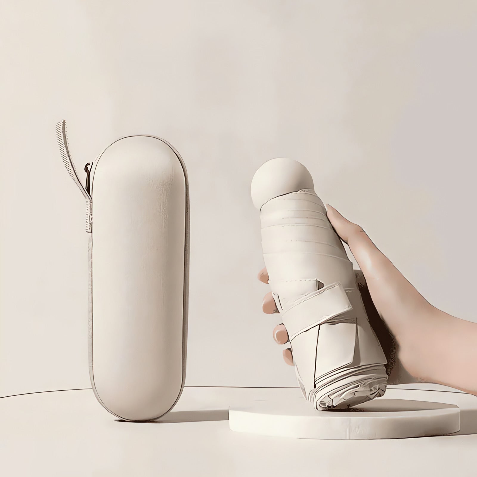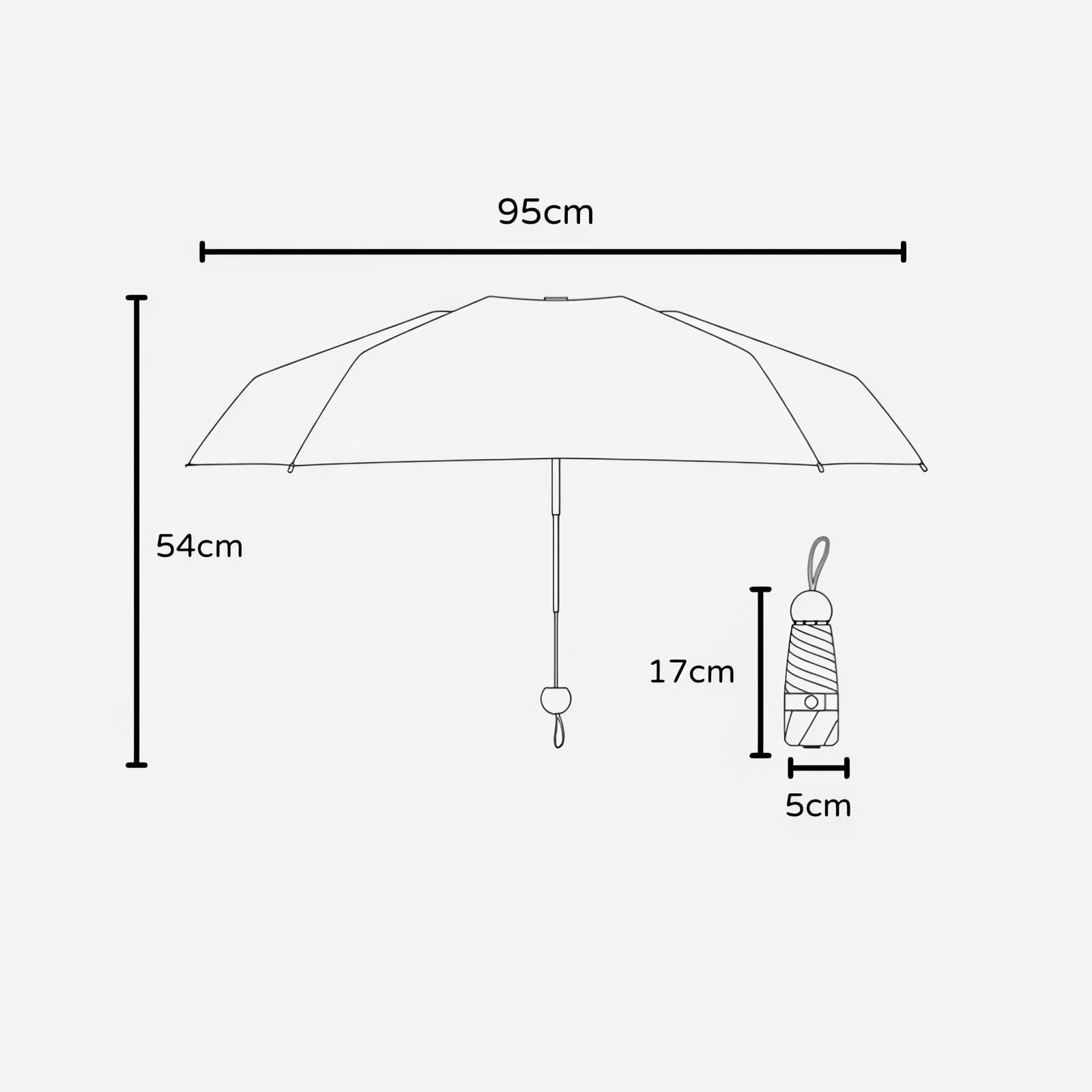 Parapluie mini et pliant, au design sobre et compact, pensé pour les déplacements quotidiens. Son format proche d’un téléphone se glisse aisément dans une poche ou un petit sac. La toile en nylon 190T protège de la pluie et filtre les rayons UV (UPF50+). Housse de rangement incluse.