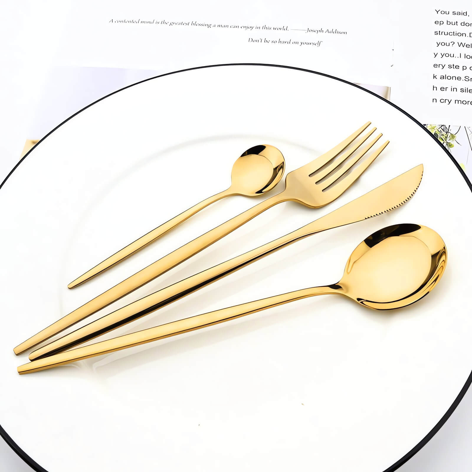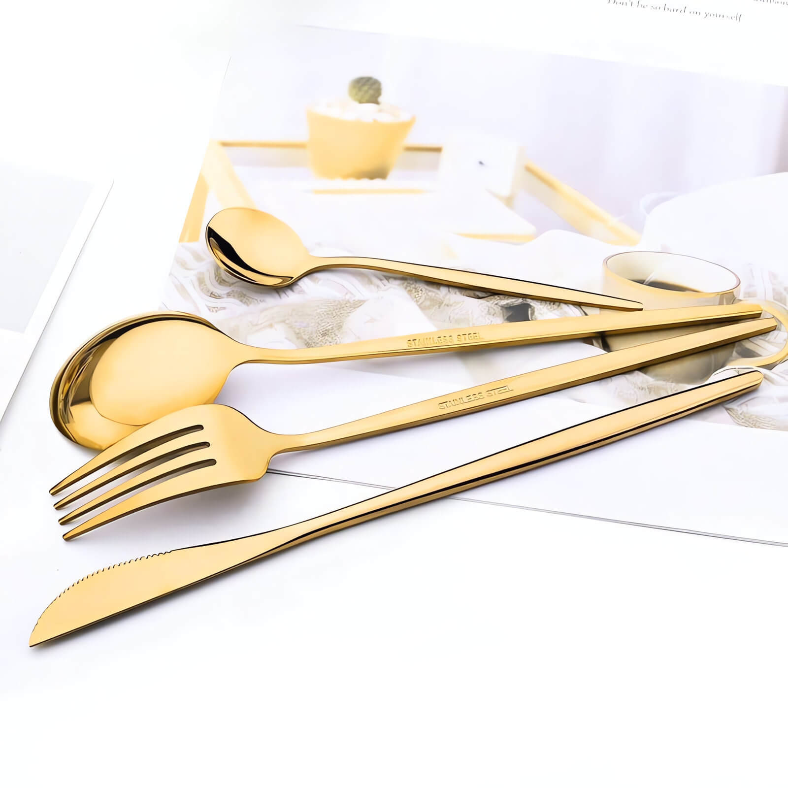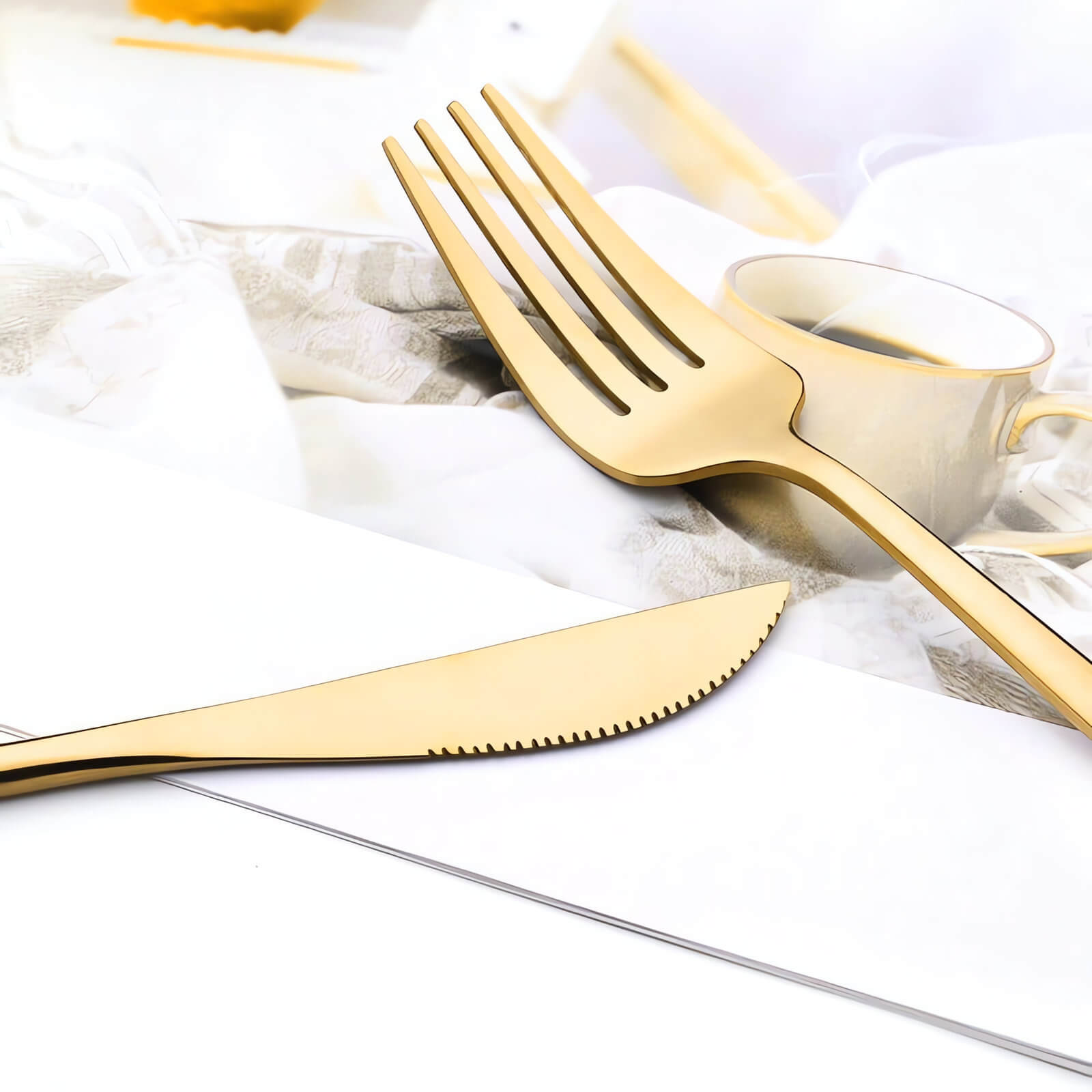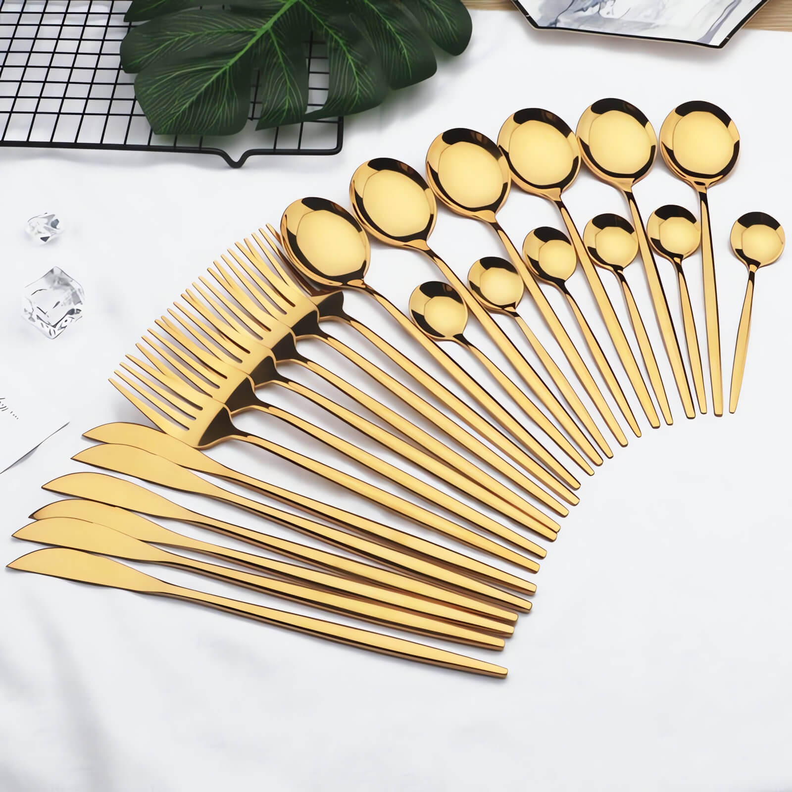The 24-Piece Premium Stainless Steel Cutlery Set is perfect for decorating your beautifully set table. For a more personal touch, choose between Gold, Black, or Rose Gold. The luxury carrying case is an excellent option to further enhance your choice, whether for personal use or as a gift for someone special.