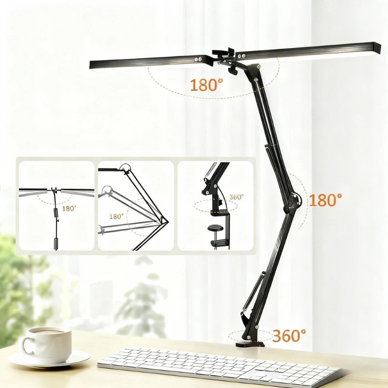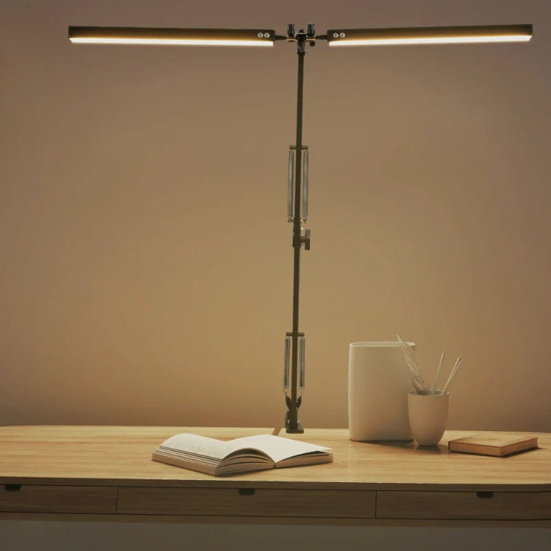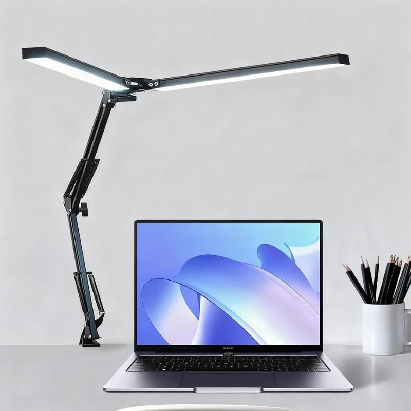 Éclairez votre espace de travail avec la Lampe de Bureau Articulée à Double Tête Homysia, une pièce au design minimaliste qui conjugue précision, flexibilité et douceur lumineuse. Sa silhouette élancée en alliage d’aluminium et ses têtes orientables offrent un éclairage généreux et sans éblouissement, idéal pour créer une atmosphère sereine et concentrée dans un intérieur contemporain.