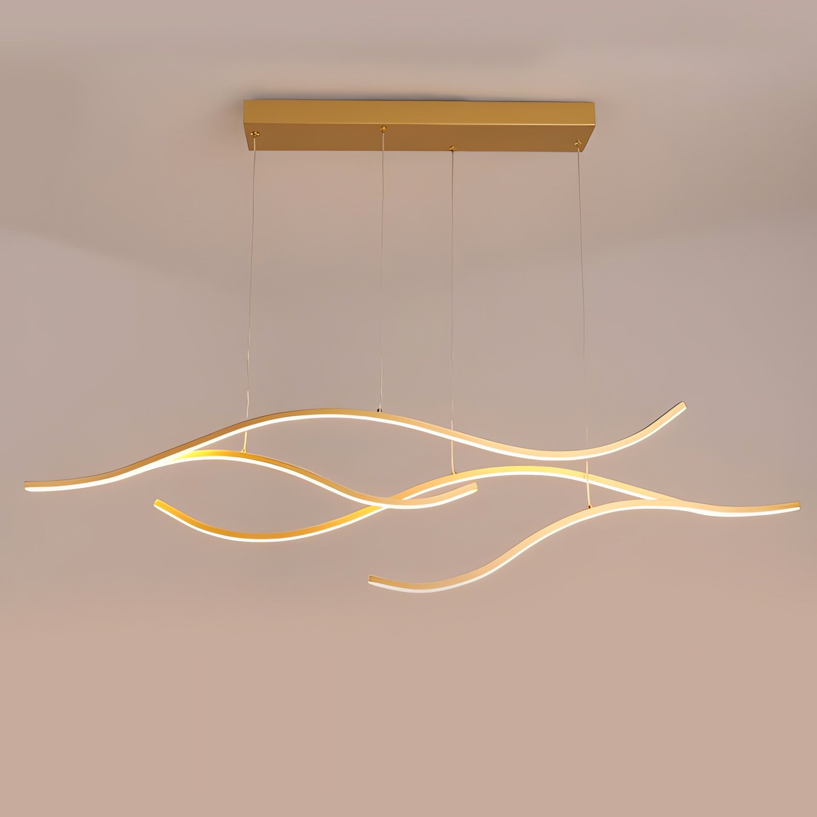 Une suspension linéaire qui équilibre douceur lumineuse et ligne sculpturale, idéale pour structurer un espace de vie avec sobriété.